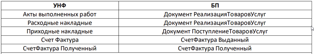 1. Сравнить наличие контрагентов в базе УНФ с Базой БП