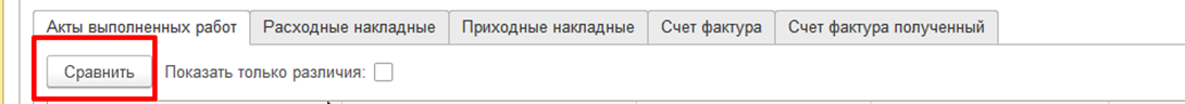 Задача данной вкладки за определенный период получить список документов в УНФ и сравнить их за тот же период с документами в Бухгалтерии