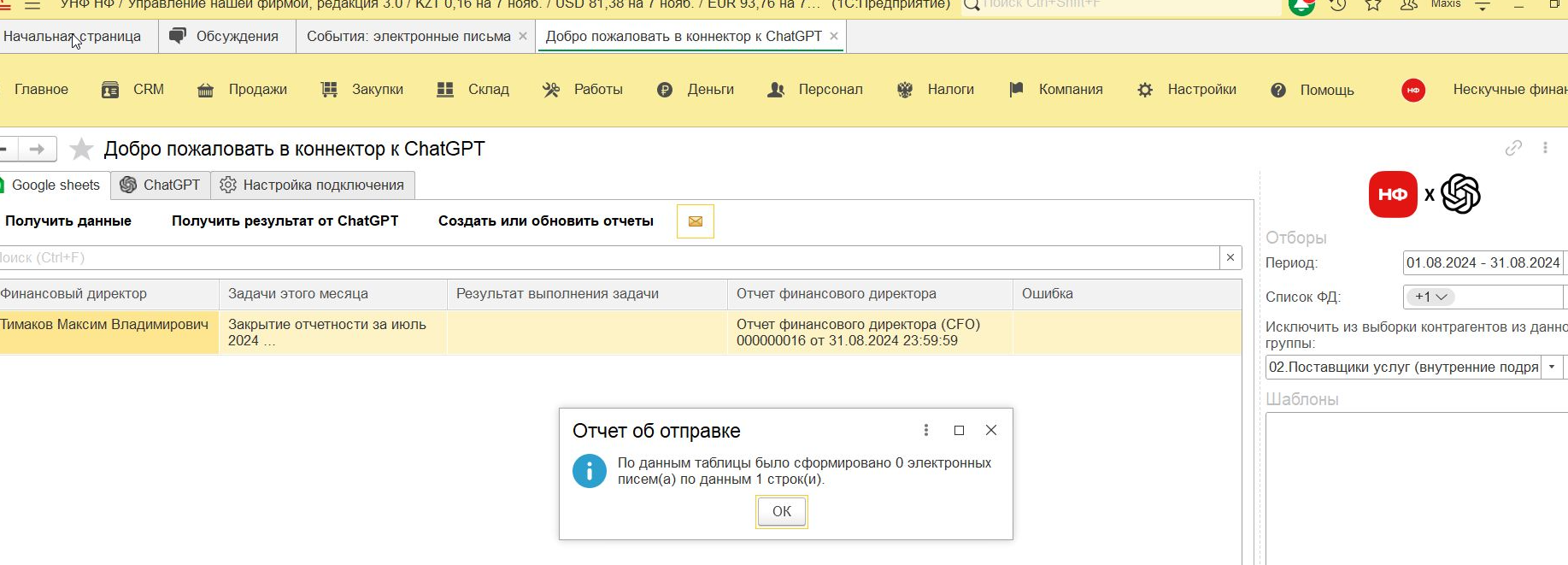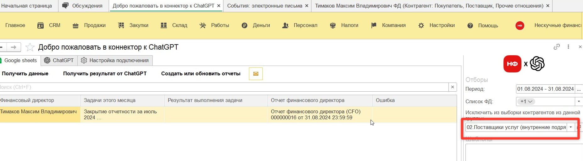 И на главной странице обработки также была выбрана эта группа контрагентов: